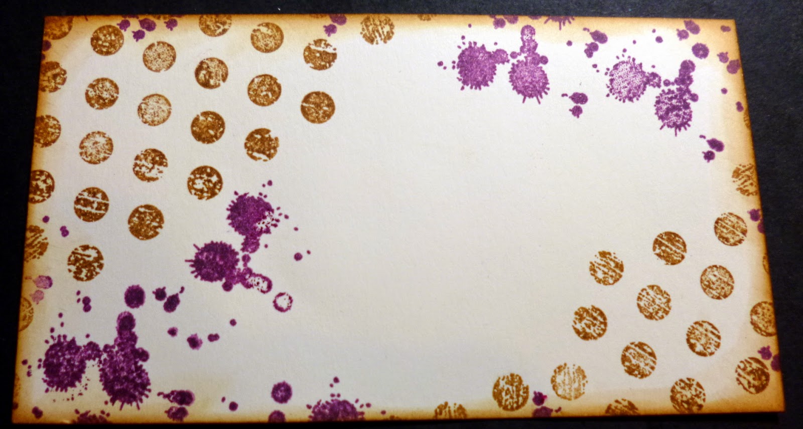 Next I took the small stamp that looks just like groupings of bubbles and again perfect medium and began adding the pattern randomly around the edge of the page , Once I got to the end I checked to see I was happy with the pattern.
